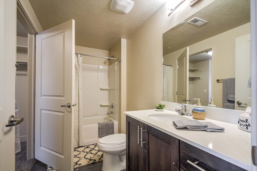Canyon View Crossing Apartments en Orem, Utah Canyon View Crossing en la ciudad de Orem es un nuevo complejo de apartamentos en Orem Orem se ha convertido en un centro comercial y tecnológico de la Central de Utah y es una de las áreas metropolitanas de más rápido crecimiento en los Estados Unidos. La ciudad de Orem está ubicada en la costa este del lago Utah y se extiende en el este de Provo y las laderas del Monte Timpanogos. Ya sea que disfrutas de las comodidades de la vida en la ciudad o de la comodidad de actividades al aire libre, como el alpinismo, el ciclismo o los deportes acuáticos, Canyon View Crossing es tu hogar perfecto. Cada plano de planta ha sido diseñado cuidadosamente para acoger un placentero estilo de vida libre de preocupaciones. En el interior de tu apartamento de una o dos habitaciones, disfrutarás de aire acondicionado centralizado, techos de 9 ft, una gran cantidad de luz, encimeras de granito, vestidores, lavadora y secadora incluidas, y acceso a Internet de alta velocidad y televisión por cable. Estacionamiento cubierto y almacenaje adicional en el lugar están disponibles para ti. En Canyon View Crossing, podrás disfrutar de una atmósfera relajante y agradable, con servicios que son insuperables. Puedes tener una vigorizante rutina de entrenamiento en el gimnasio, luego relájate con un refrescante chapuzón en la piscina al aire libre o sumérgete en nuestro jacuzzi, disfruta de tu juego en nuestra cancha de básquetbol, mira una película en nuestro cine, invita a algunos amigos a que te acompañen en la sala de juegos, o relájate en nuestro brasero al aire libre. Nuestra dedicación a la calidad de tu experiencia de vida es la principal prioridad en Canyon View Crossing. Llama hoy a nuestro personal amigable para conocer más acerca de lo que tenemos para ofrecerte y programar un recorrido. Nos encantaría tenerte como nuestro nuevo residente. 801-669-5700 Los precios están sujetos a cambios, según la disponibilidad y la calificación del solicitante, se pueden aplicar tarifas adicionales.