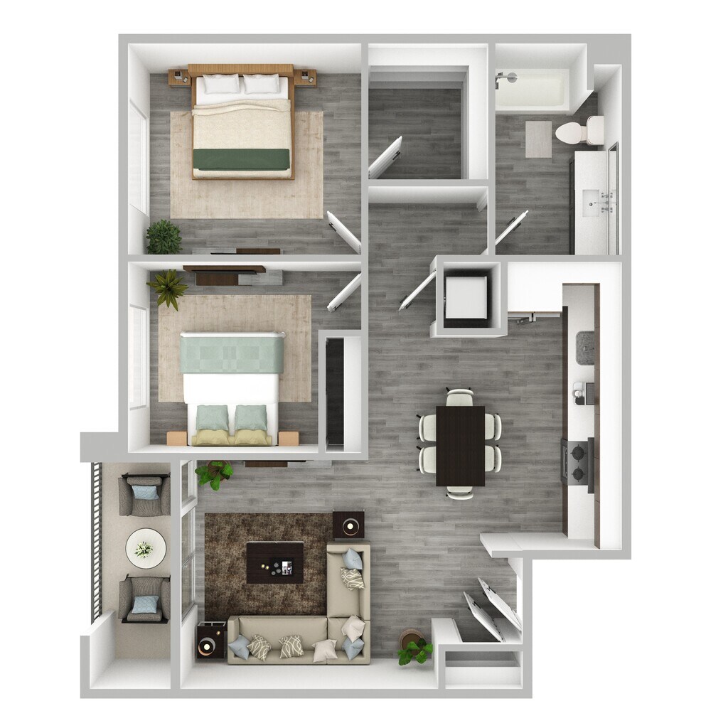 2 Dormitorios, 1 Baño, 891-936 pies²Más CargosDisponible AhoraEl más grandeEsta opción tiene las unidades más grandes para este modeloGalería del Modelo