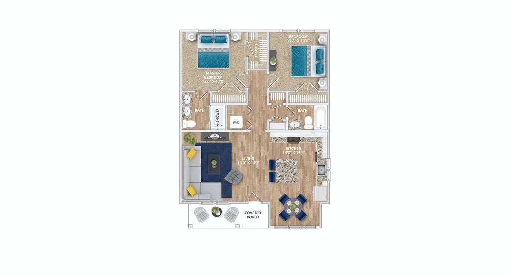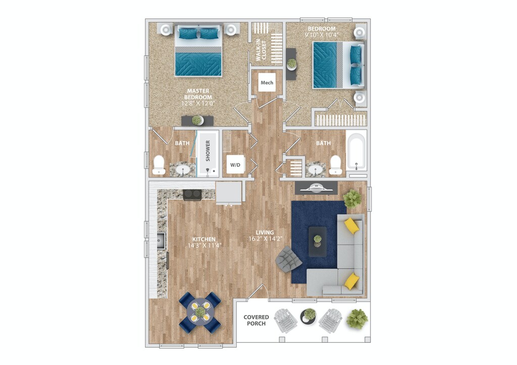 Modelo de apartamento: Tybee2 Dormitorios, 2 Baños, 757 sq ftDisponible Ahora![]()