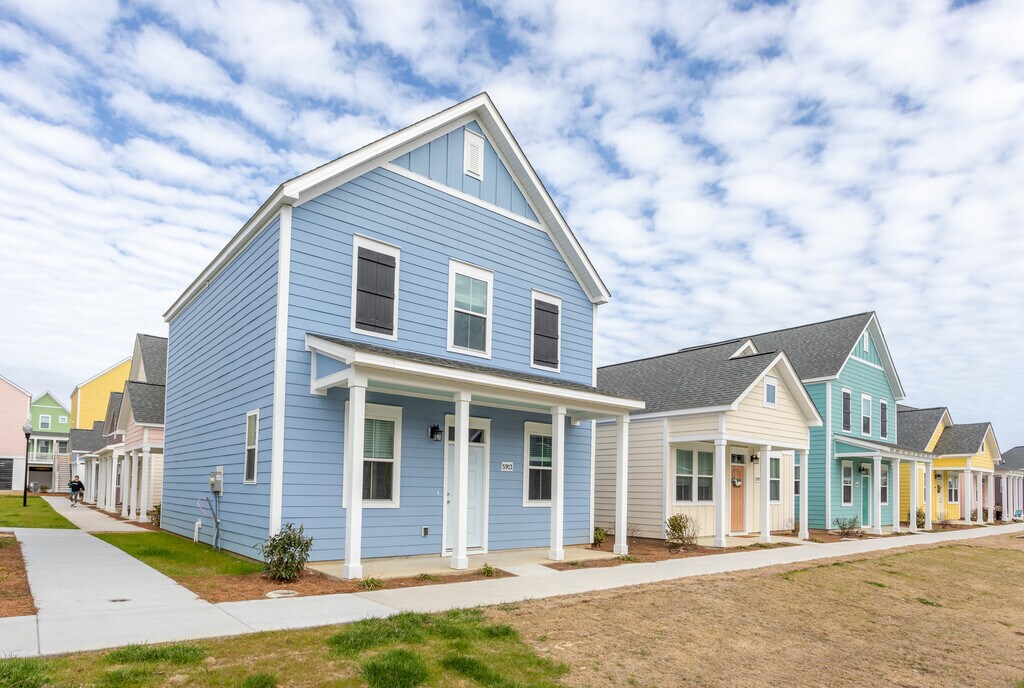 Disfruta de una experiencia residencial única en Cape Cottages, los primeros apartamentos estilo cabaña en Leland, NC. Envueltos en el estilo arquitectónico costero, los planos de planta elegantemente diseñados de Cape Cottage rinden homenaje a su encantadora ubicación con un estilo de vida que supera con creces las expectativas de la vida típica en un apartamento. Piensa en tu nueva cabaña de una, dos o tres habitaciones de uno o dos pisos como tu propia alcoba personal con un porche delantero cubierto, amplias encimeras de granito, vestidores y electrodomésticos de acero inoxidable. Aventúrate a nuestra casa club para disfrutar de un chapuzón en la piscina, disfruta de una tarde siesta en nuestro porche trasero con mosquitero, socializa con los vecinos en nuestro césped para juegos y pabellón con parrillas o disfruta de una reunión privada en una de nuestras tres microoficinas con sala Zoom. Realmente puedes escaparte a Cape
