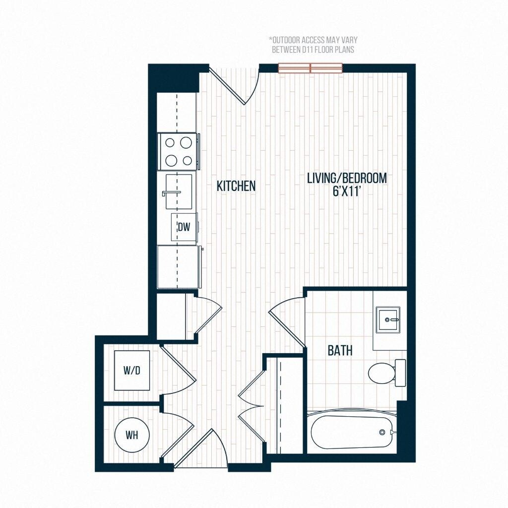 D11 - Plano 1 Unidad de apartamento: 030Modelo de apartamento: D11Estudio, 1 Baño, 365 sq ftDisponible February 1, 2026Plano: D11