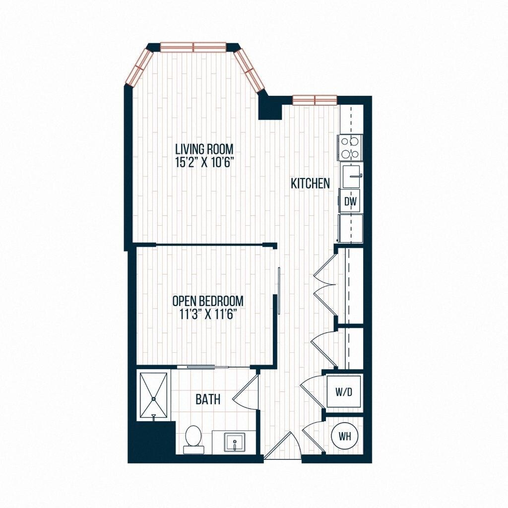 Modelo de apartamento: D11Estudio, 1 Baño, 365 sq ftDisponible February 1, 2026![]()