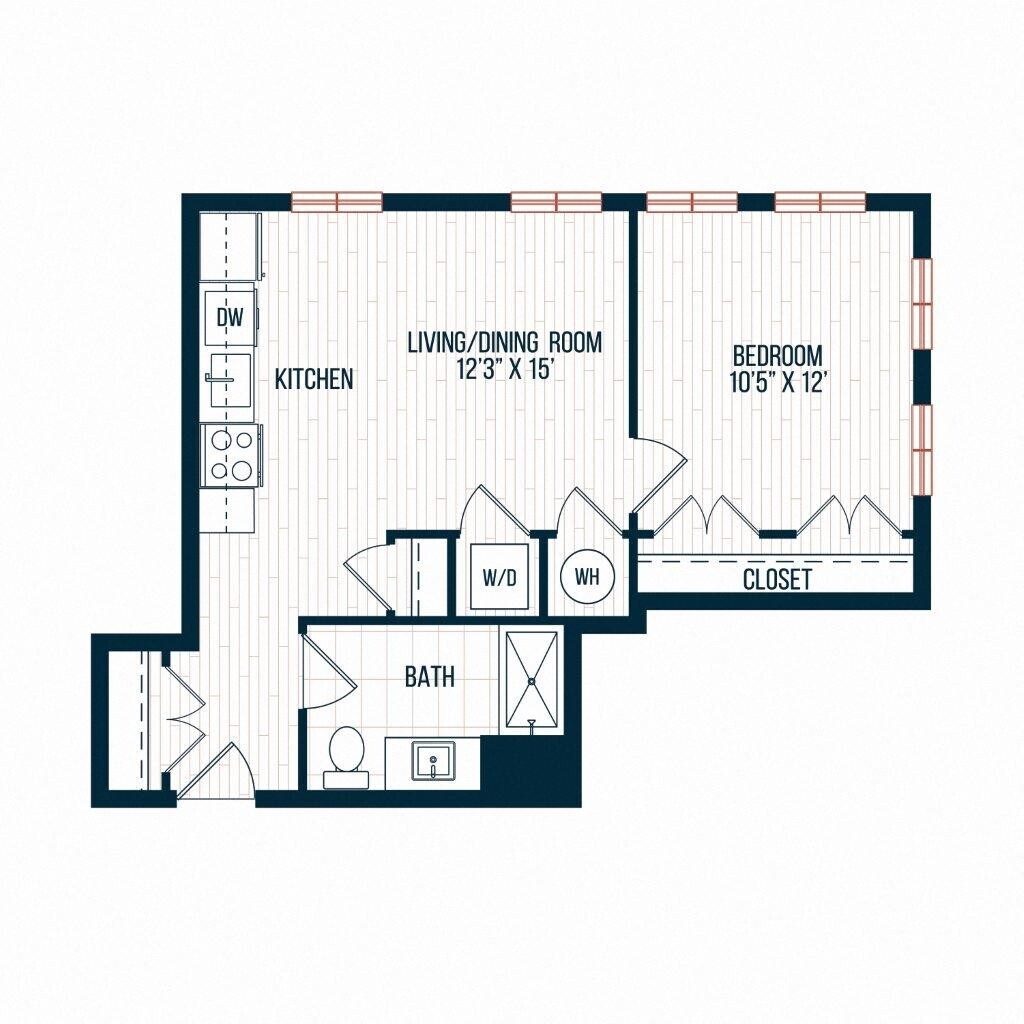Modelo de apartamento: D4 BEstudio, 1 Baño, 435 sq ftDisponible January 17, 2026![]()