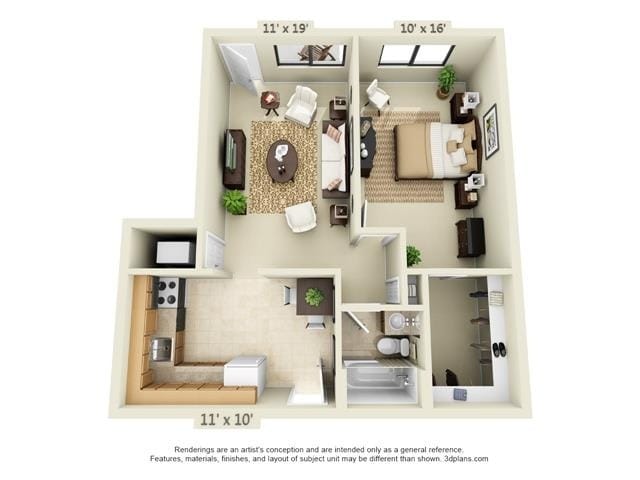 1 Dormitorio, 1 Baño, 764-810 pies²Galería del Modelo
