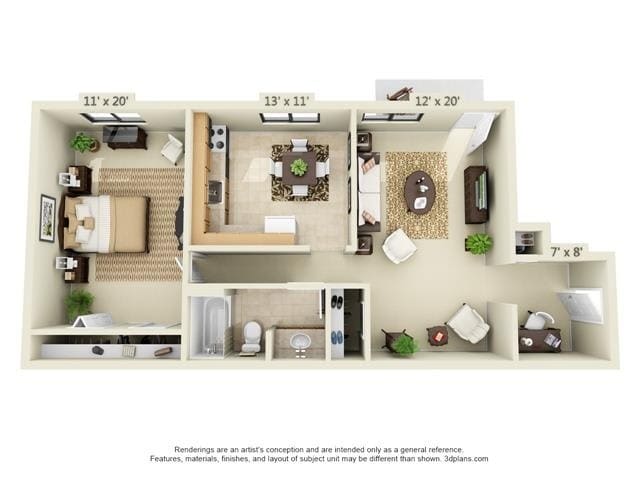 One Bedroom One Bath - Plano 1 One Bedroom W/Den