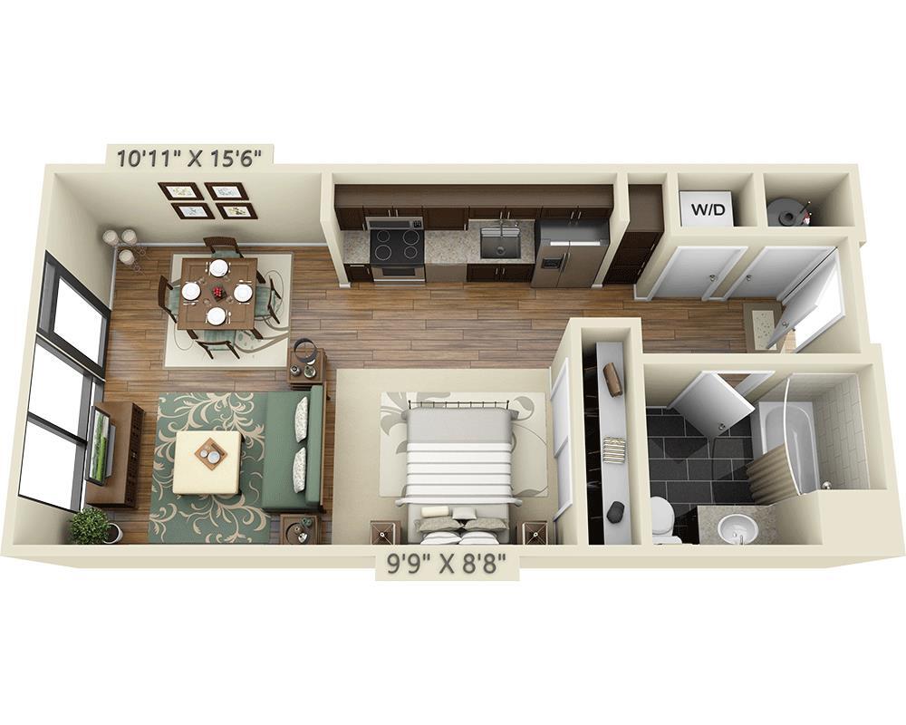 Estudio, 1 Baño, 512-523 pies²Precio Mensual TotalDisponible AhoraPrecio Mensual Total