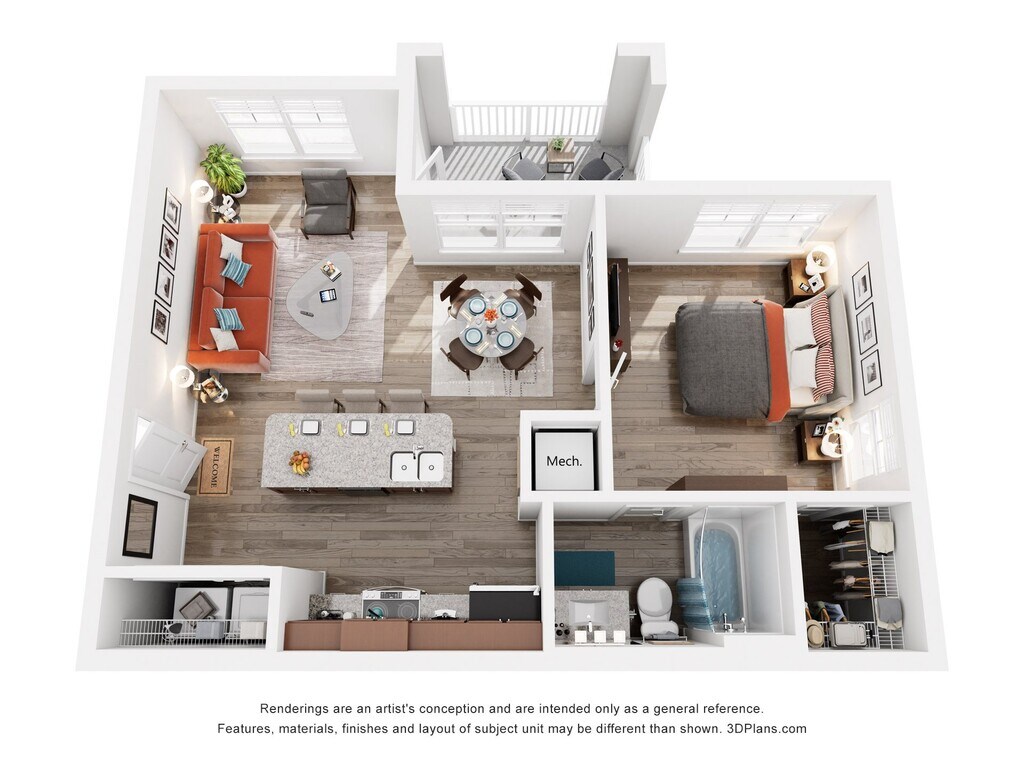 1 Dormitorio, 1 Baño, 775 pies²Disponible AhoraGalería del Modelo
