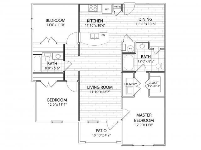 Modelo de apartamento: HarmonyDesde $1,4412 Dormitorios, 2 Baños, 1065 sq ftDisponible Ahora![]()