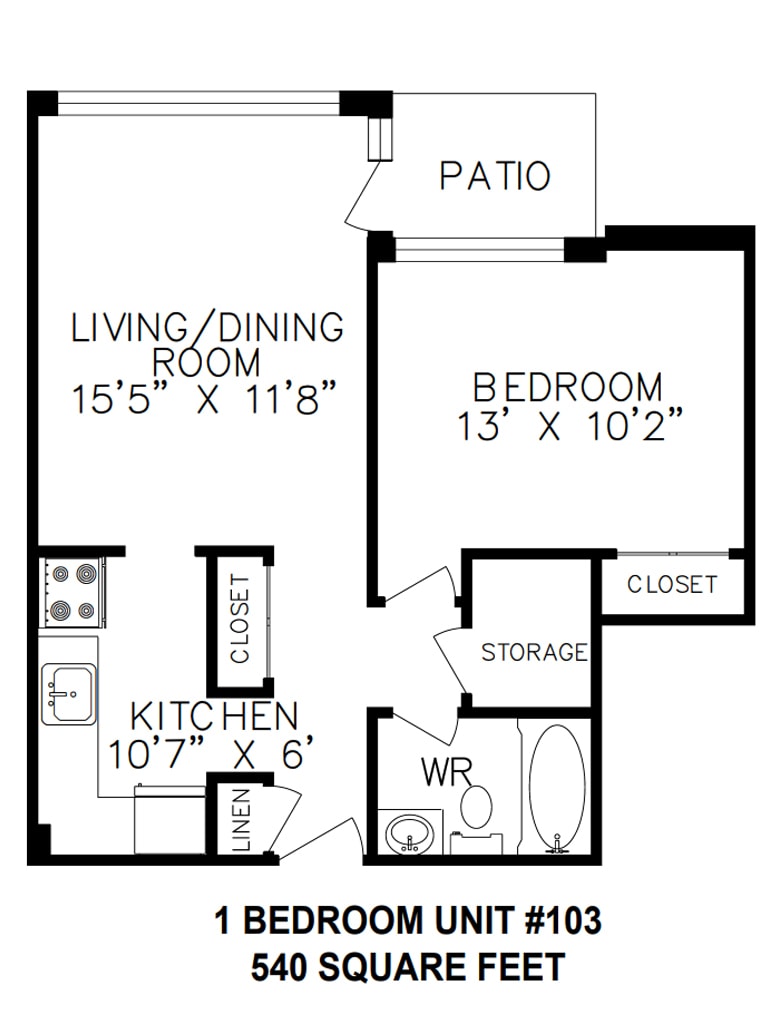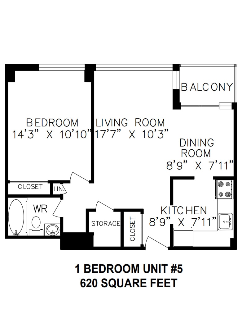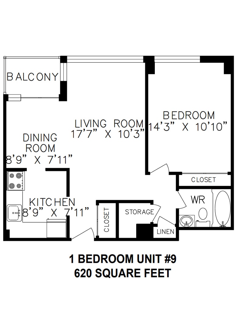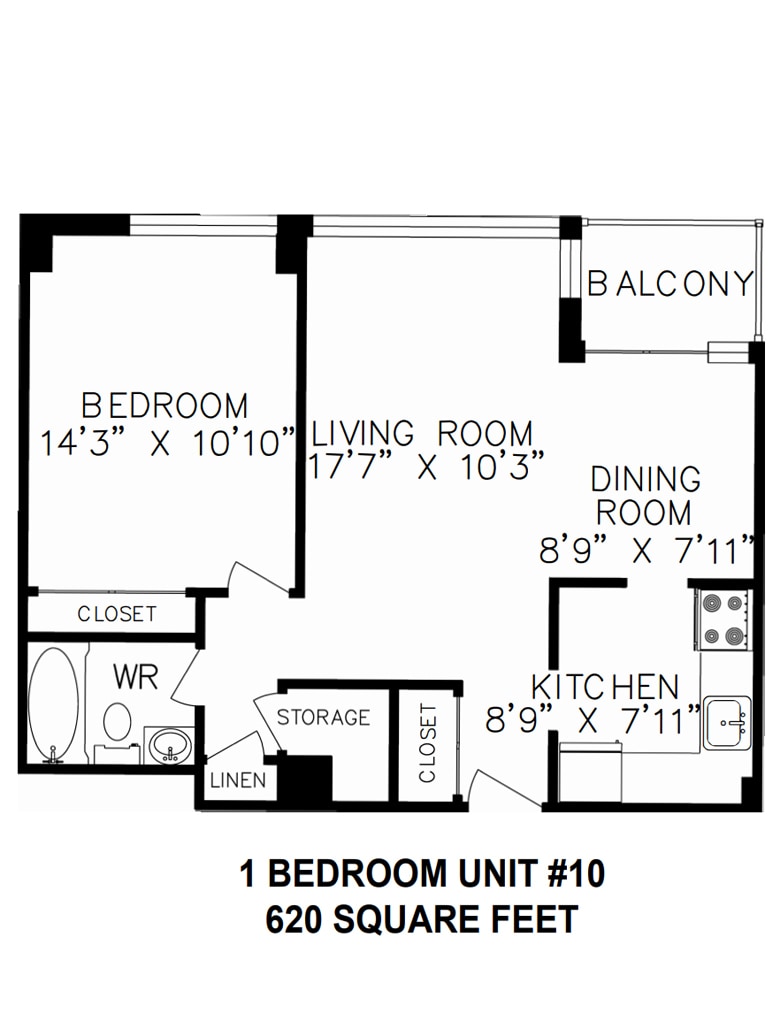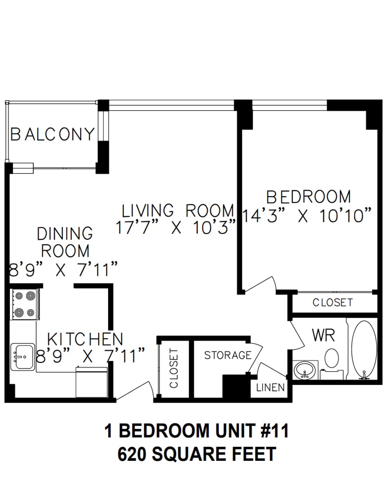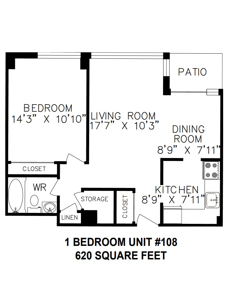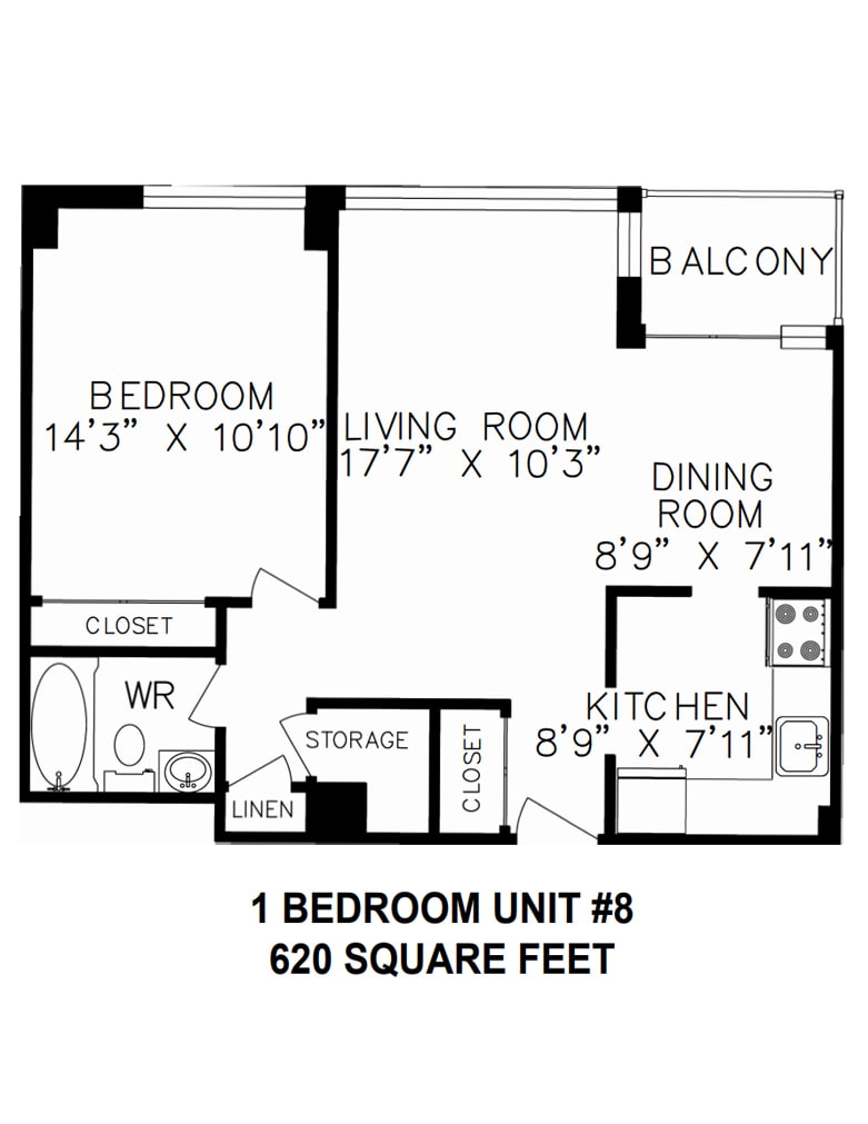 1 Dormitorio, 1 Baño, 620 pies²Disponible AhoraGalería del Modelo