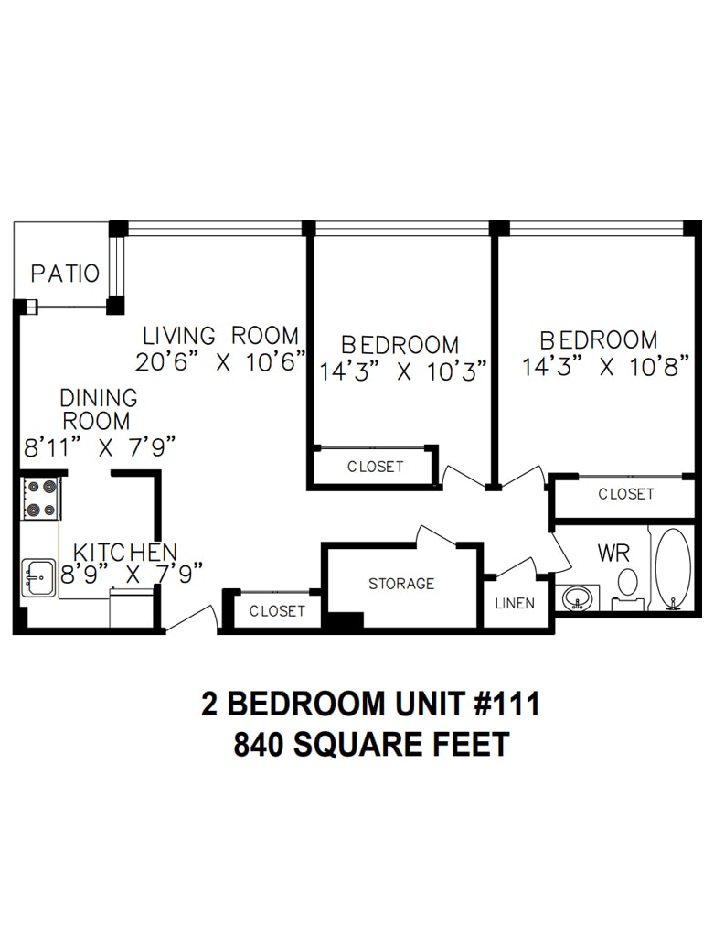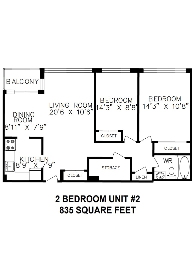 2 Dormitorios, 1 Baño, 835 pies²Disponible AhoraGalería del Modelo
