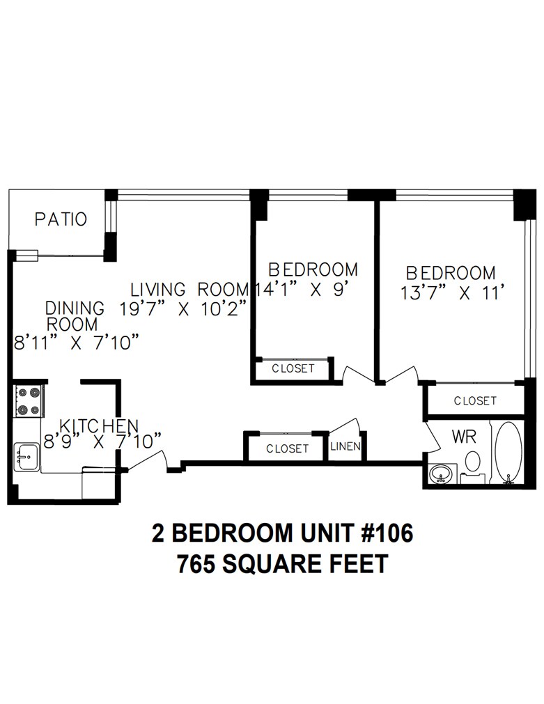 Modelo de apartamento: 2 Bedroom$1,7992 Dormitorios, 1 Baño, 835 sq ftDisponible Ahora![]()