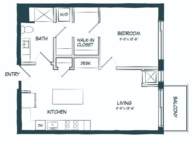 AA3 - Plano 1 Unidad de apartamento: 610Modelo de apartamento: AA3Desde $1,945Estudio, 1 Baño, 595 sq ftDisponible March 13, 2026Plano: AA1