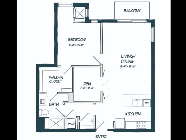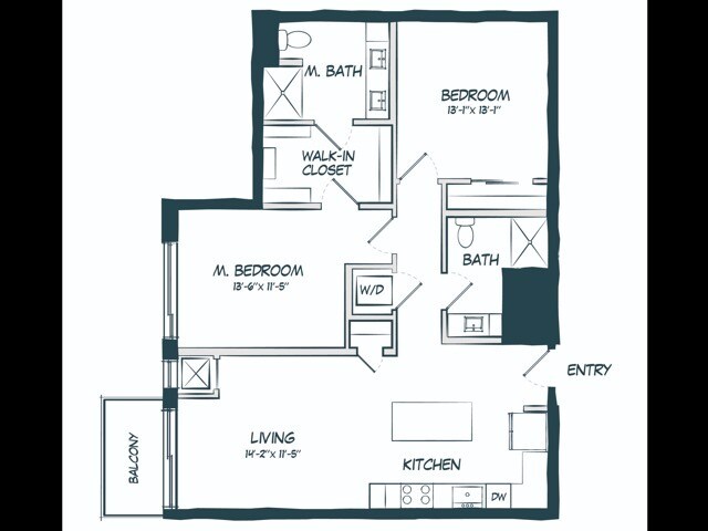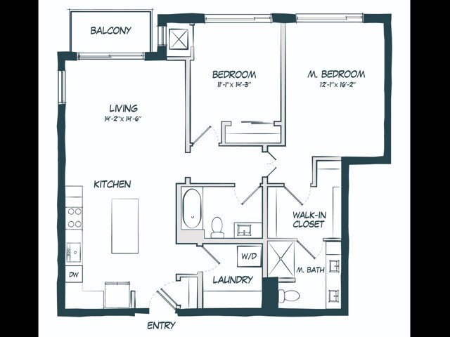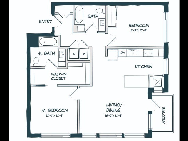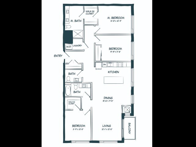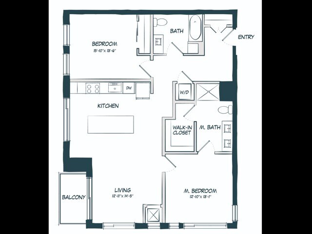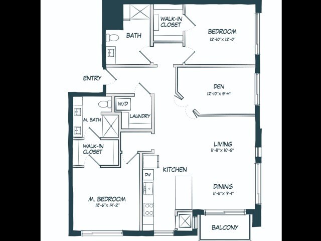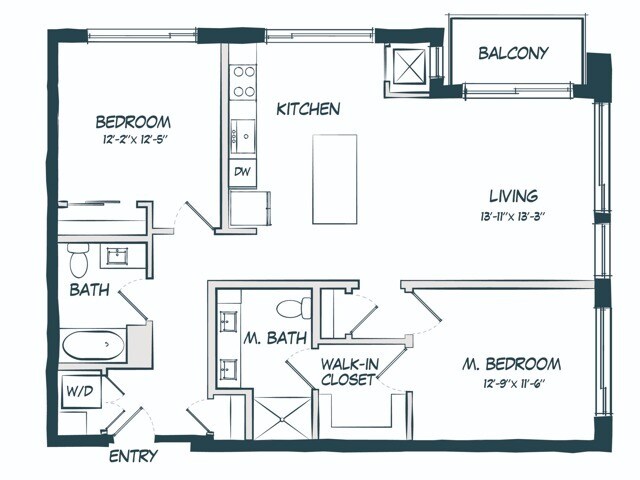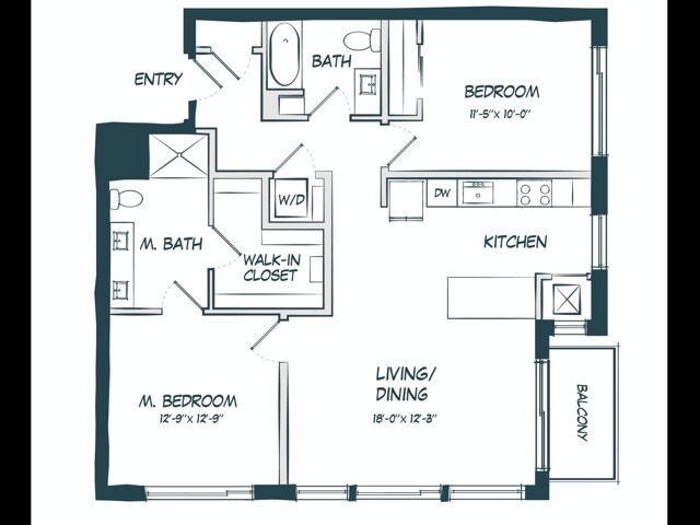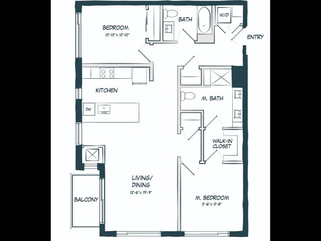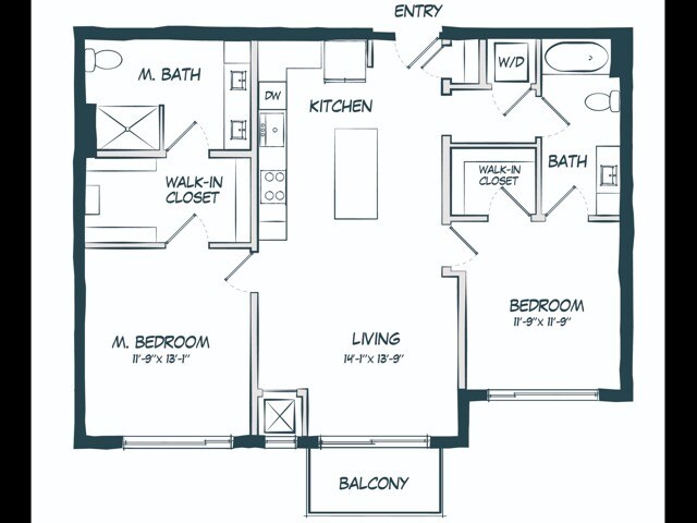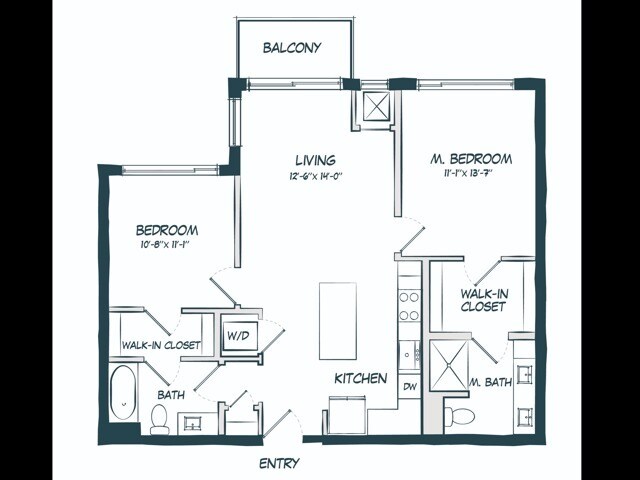 B3A - Plano 1 Unidad de apartamento: 622Modelo de apartamento: B3ADesde $2,1451 Dormitorio, 1 Baño, 744 sq ftDisponible AhoraPlano: B2