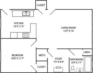 1 Bed, 1 bath - Plano 6