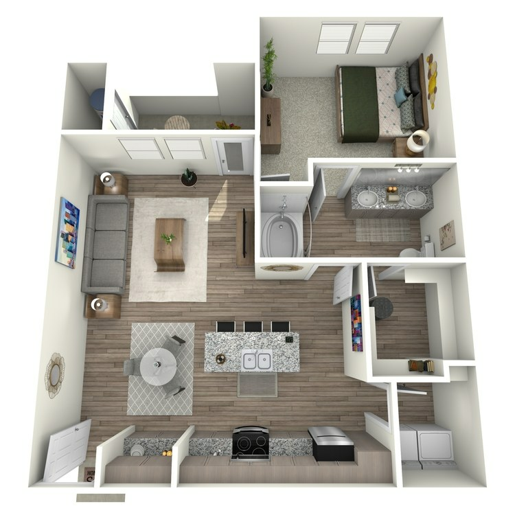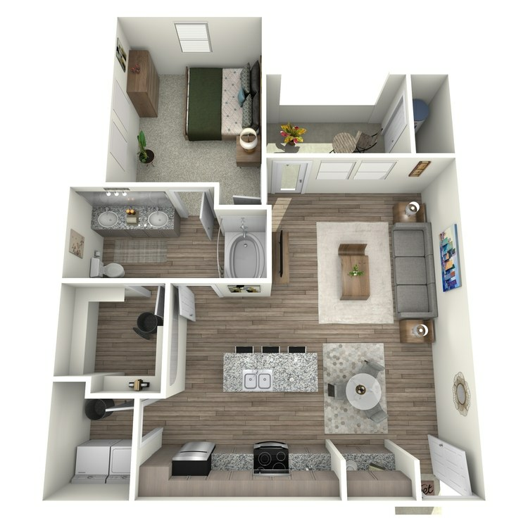 1 Dormitorio, 1 Baño, 625 pies²Disponible AhoraGalería del Modelo