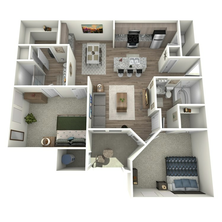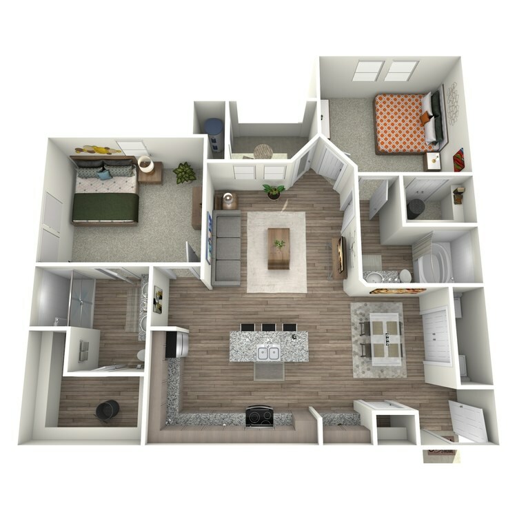 Modelo de apartamento: 2x22 Dormitorios, 2 Baños, 1016 sq ftDisponible Ahora![]()