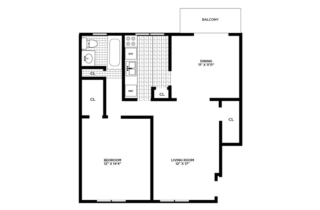 1 Dormitorio, 1 Baño, 550 pies²Disponible Oct 17Galería del Modelo