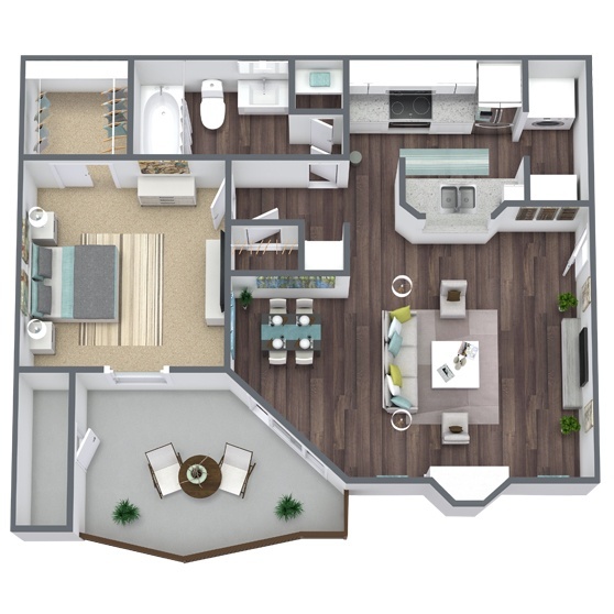 1 Dormitorio, 1 Baño, 564-754 pies²Disponible AhoraGalería del Modelo