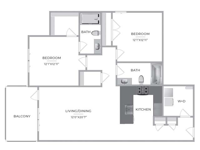 Modelo de apartamento: Two Bedroom Two Bathroom LargeLlame para Precios2 Dormitorios, 2 Baños, 1119 sq ftNo Disponible![]()