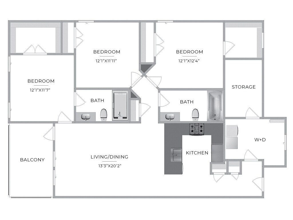 Three Bedroom Two Bathroom Large - Plano 2 Unidad de apartamento: 3-402Modelo de apartamento: Three Bedroom Two Bathroom Large$2,3823 Dormitorios, 2 Baños, 1442 sq ftDisponible November 21, 2025![]()