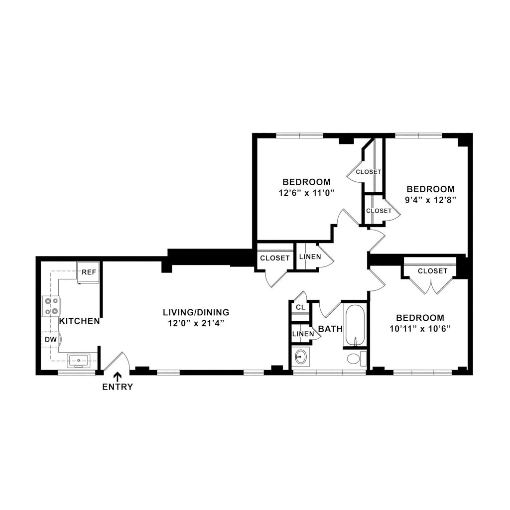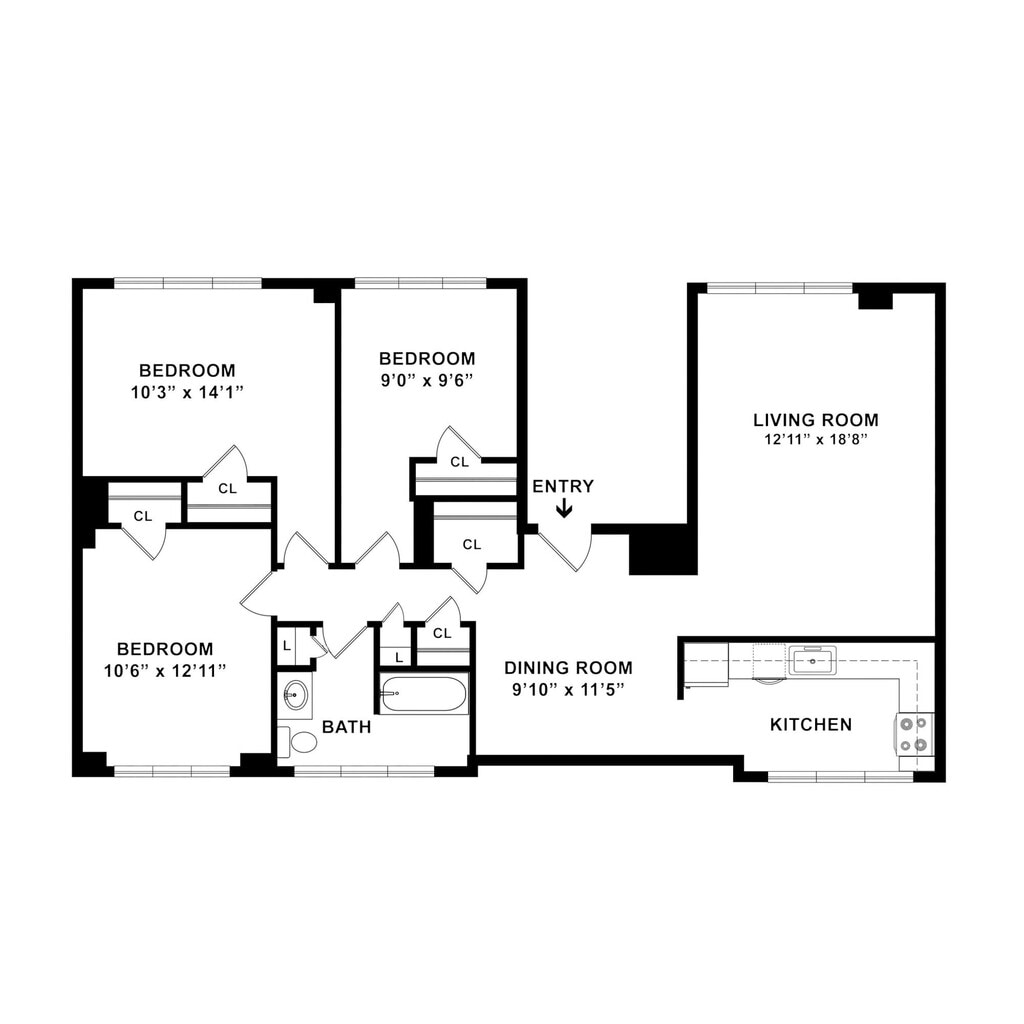 Modelo de apartamento: Three Bed One Bath$1,4533 Dormitorios, 1 Baño, 932-1115 sq ftNo Disponible![]()