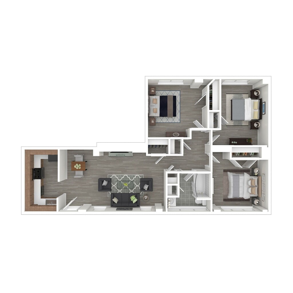 3 Dormitorios, 1 Baño, 932-1115 pies²Galería del Modelo
