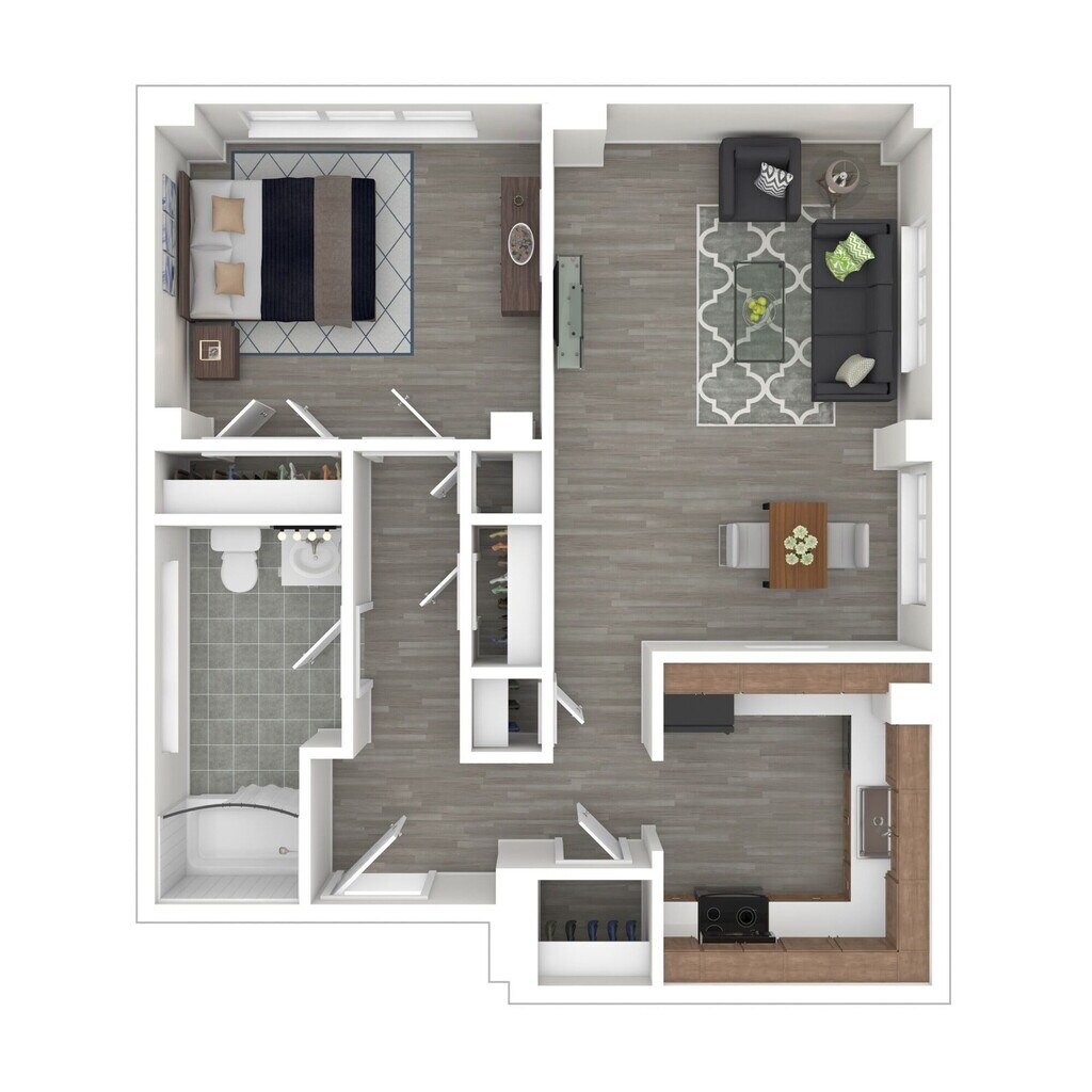 Modelo de apartamento: One Bed One Bath$1,0441 Dormitorio, 1 Baño, 721 sq ftNo Disponible![]()