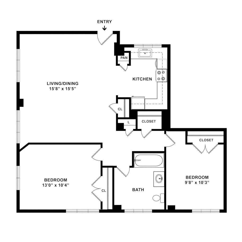 One Bed One Bath - Plano 3 2 Dormitorios
