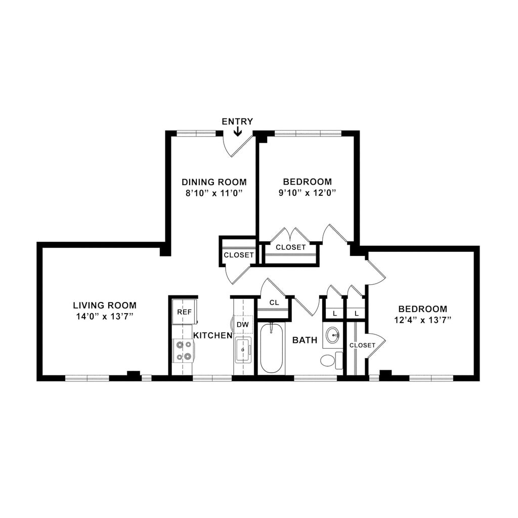 Modelo de apartamento: Two Bed One Bath$1,2572 Dormitorios, 1 Baño, 822-835 sq ftNo Disponible![]()