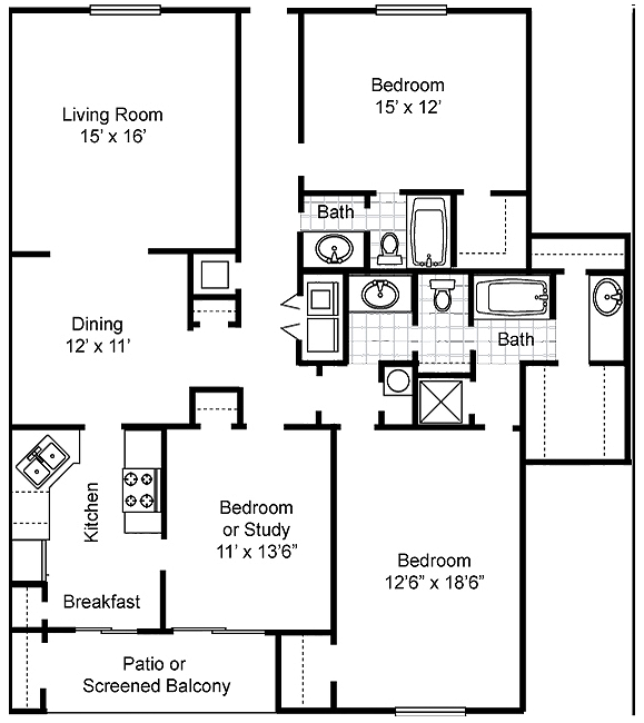Modelo de apartamento: The Dogwood$1,2902 Dormitorios, 2 Baños, 1536 sq ftNo Disponible![]()