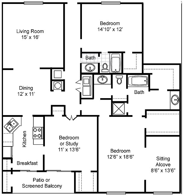 Modelo de apartamento: The Magnolia$1,4803 Dormitorios, 2 Baños, 1957 sq ftNo Disponible![]()