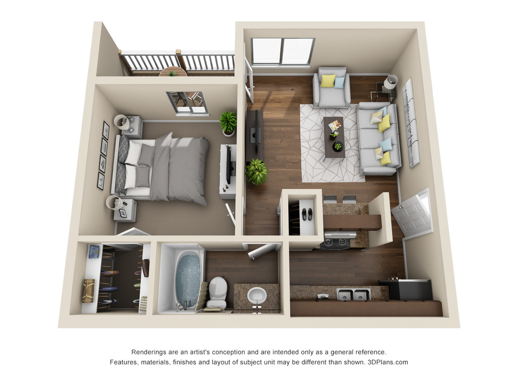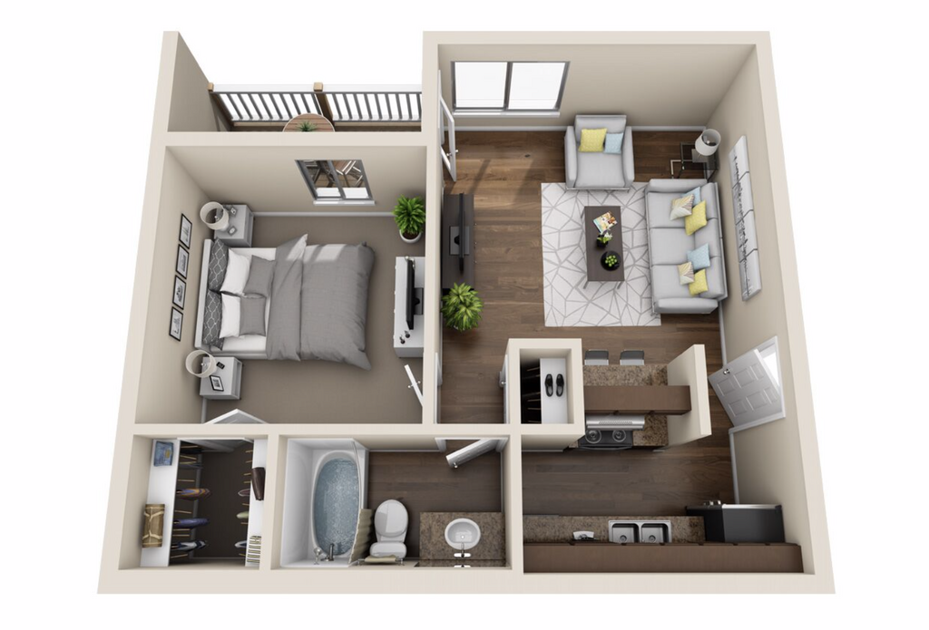1 Dormitorio, 1 Baño, 653 pies²Disponible AhoraGalería del Modelo