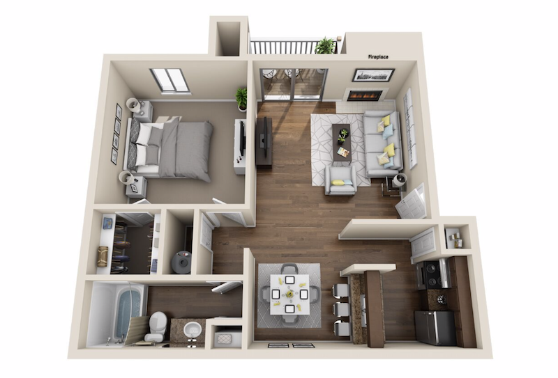 Modelo de apartamento: BaronneDesde $7851 Dormitorio, 1 Baño, 653 sq ftDisponible AhoraPlanosFotos![]()