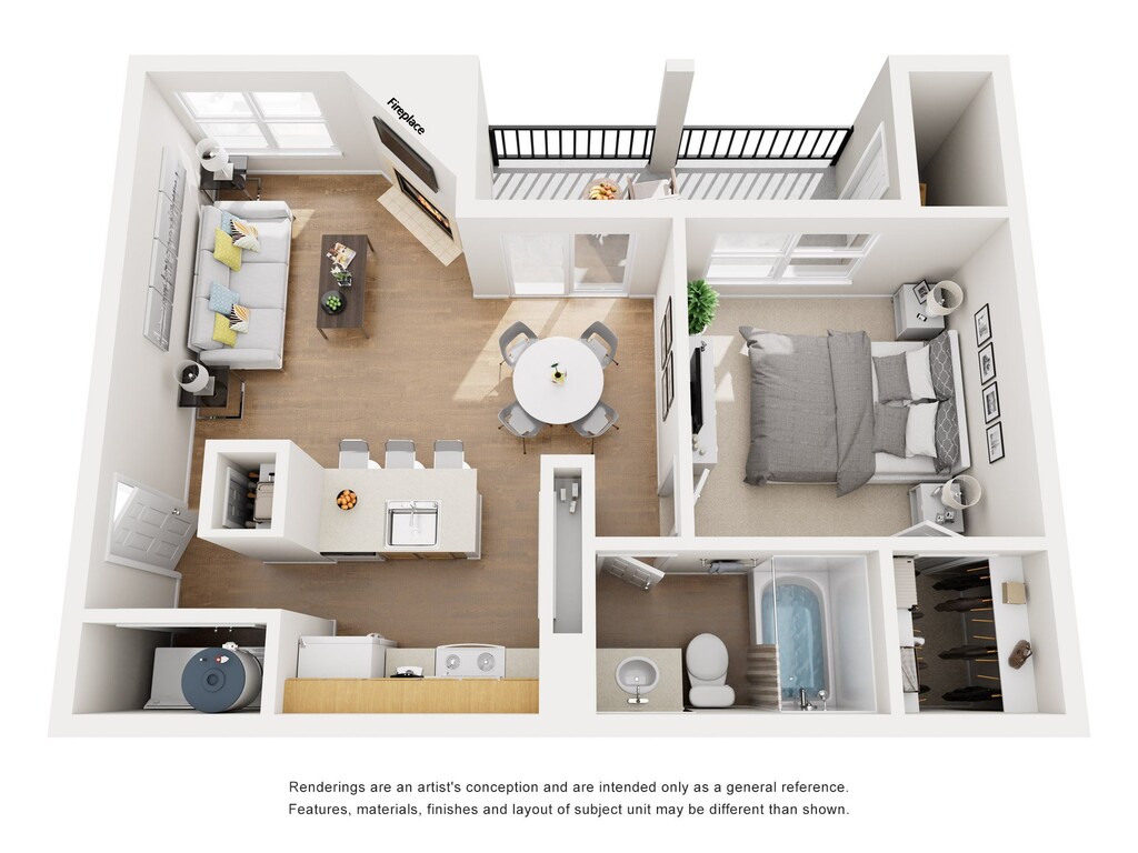 1 Dormitorio, 1 Baño, 669 pies²Disponible AhoraGalería del Modelo