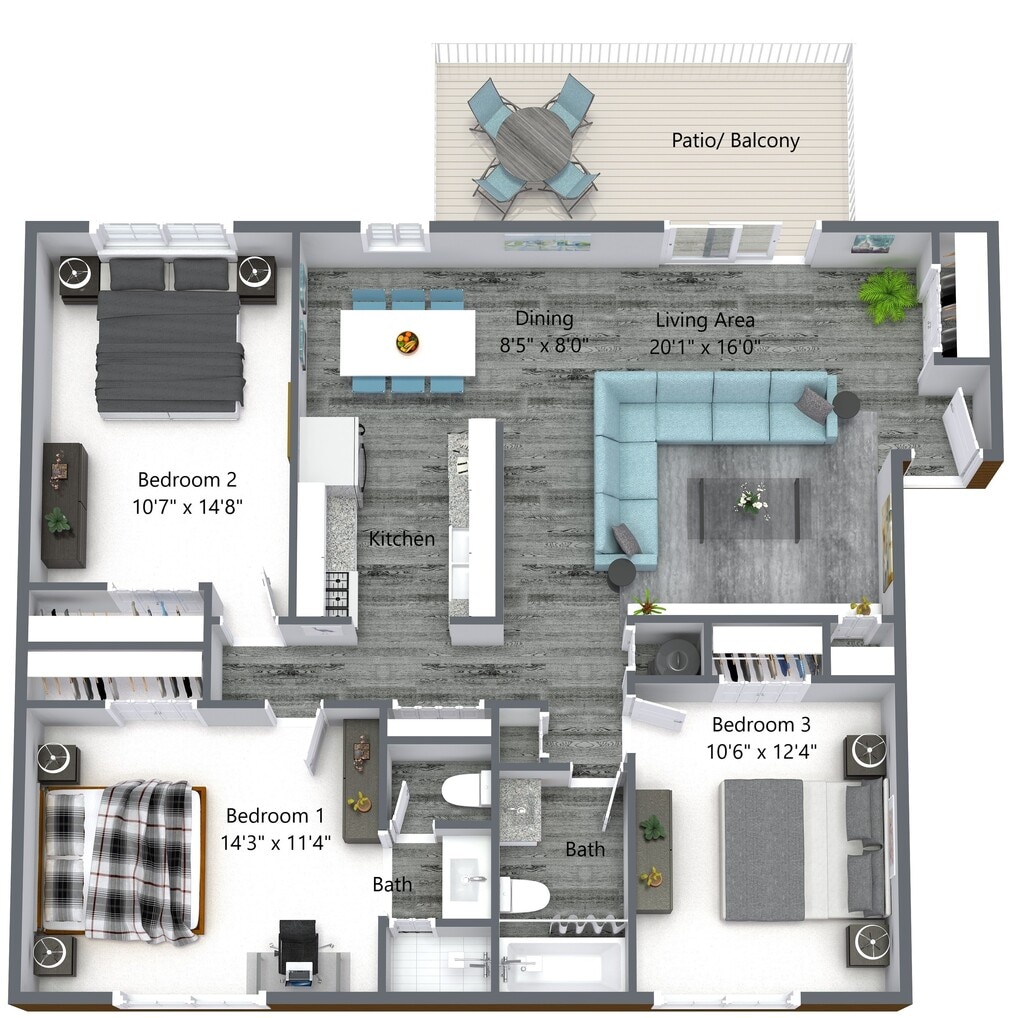 3 Dormitorios, 2 Baños, 992 pies²Galería del Modelo