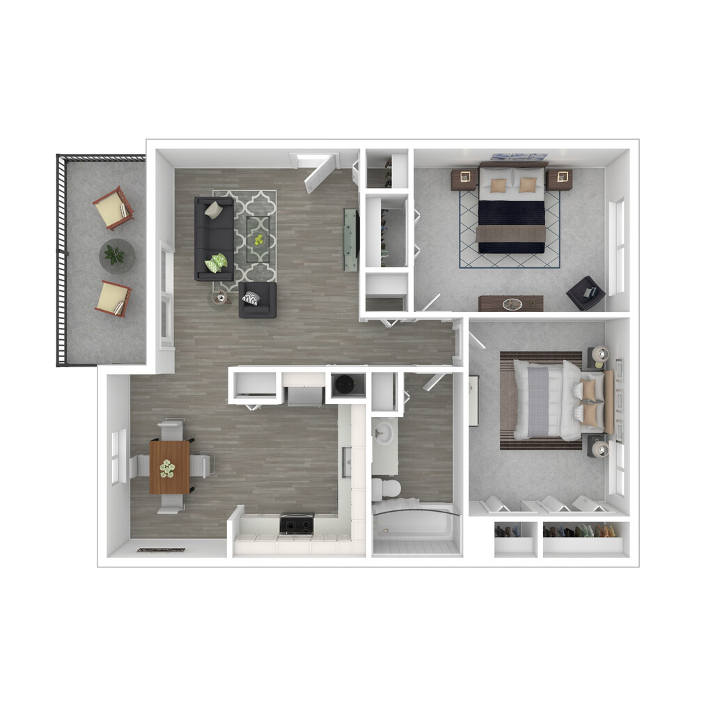 2 Dormitorios, 1 Baño, 800 pies²Galería del Modelo