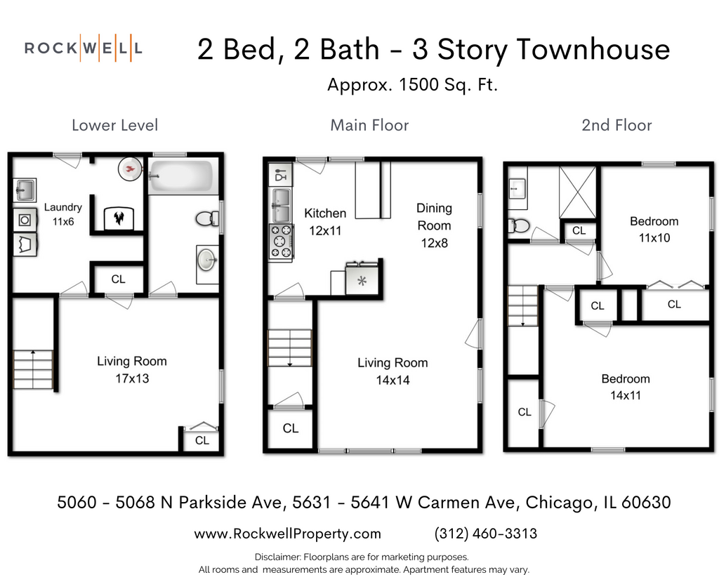 Maravillosas homes adosadas de 3 pisos ubicado en Jefferson Park. Todos los apartamentos tienen 2 habitaciones con 2 baños completos, y un sótano acabado. Todos los apartamentos se han renovado en 2016 con diseño de la cocina y los baños. Las comodidades del apartamento incluyen aire acondicionado centralizado & calefacción centralizados, lavandería en la unidad, electrodomésticos de acero inoxidable y mucho más.