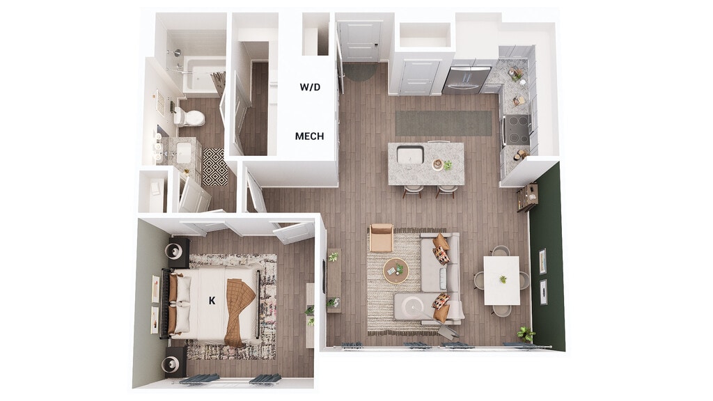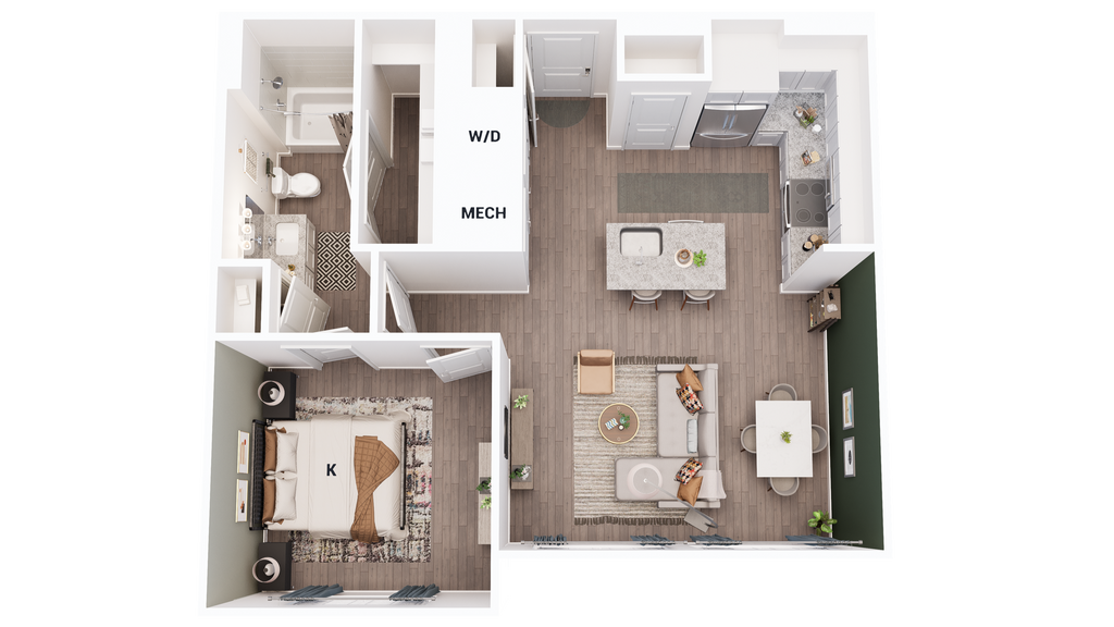 Modelo de apartamento: A1Desde $1,5691 Dormitorio, 1 Baño, 746 sq ftDisponible February 20, 2026![]()