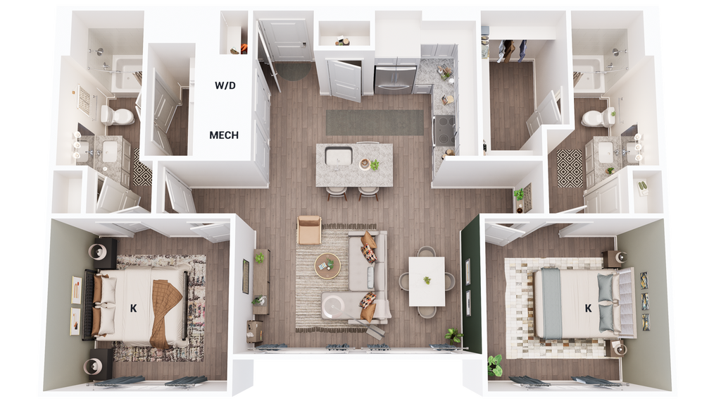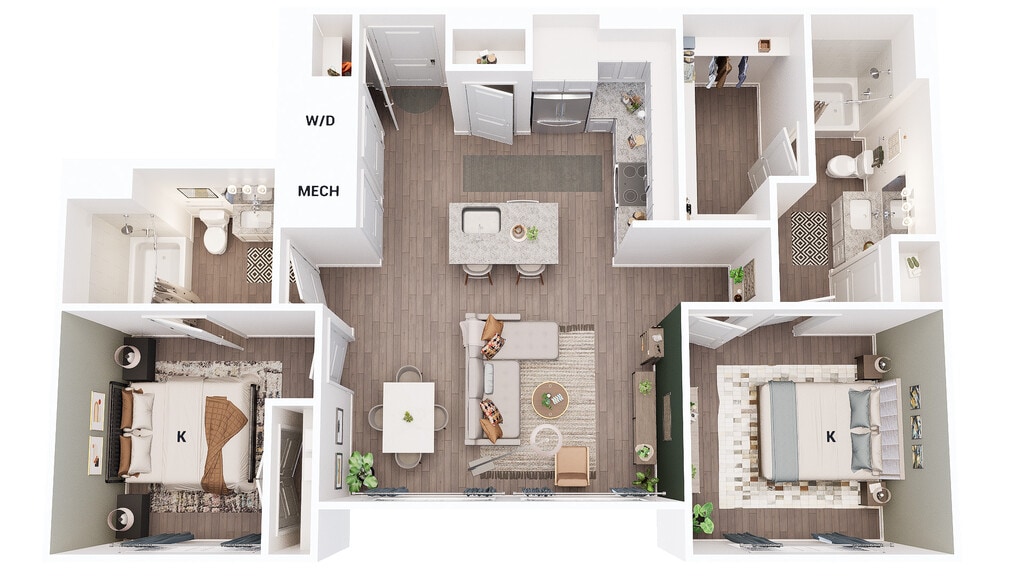 Modelo de apartamento: B2Desde $1,8642 Dormitorios, 2 Baños, 1013 sq ftDisponible February 20, 2026![]()