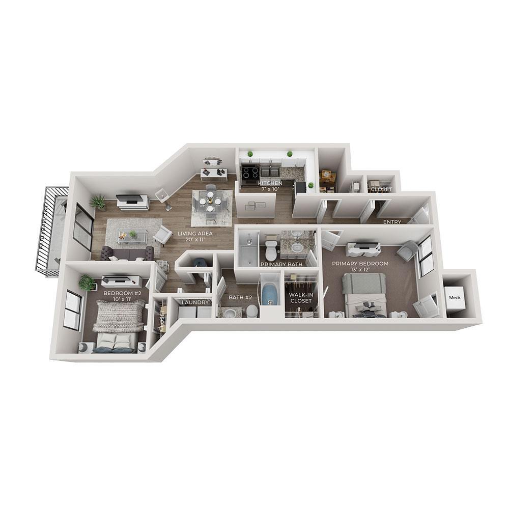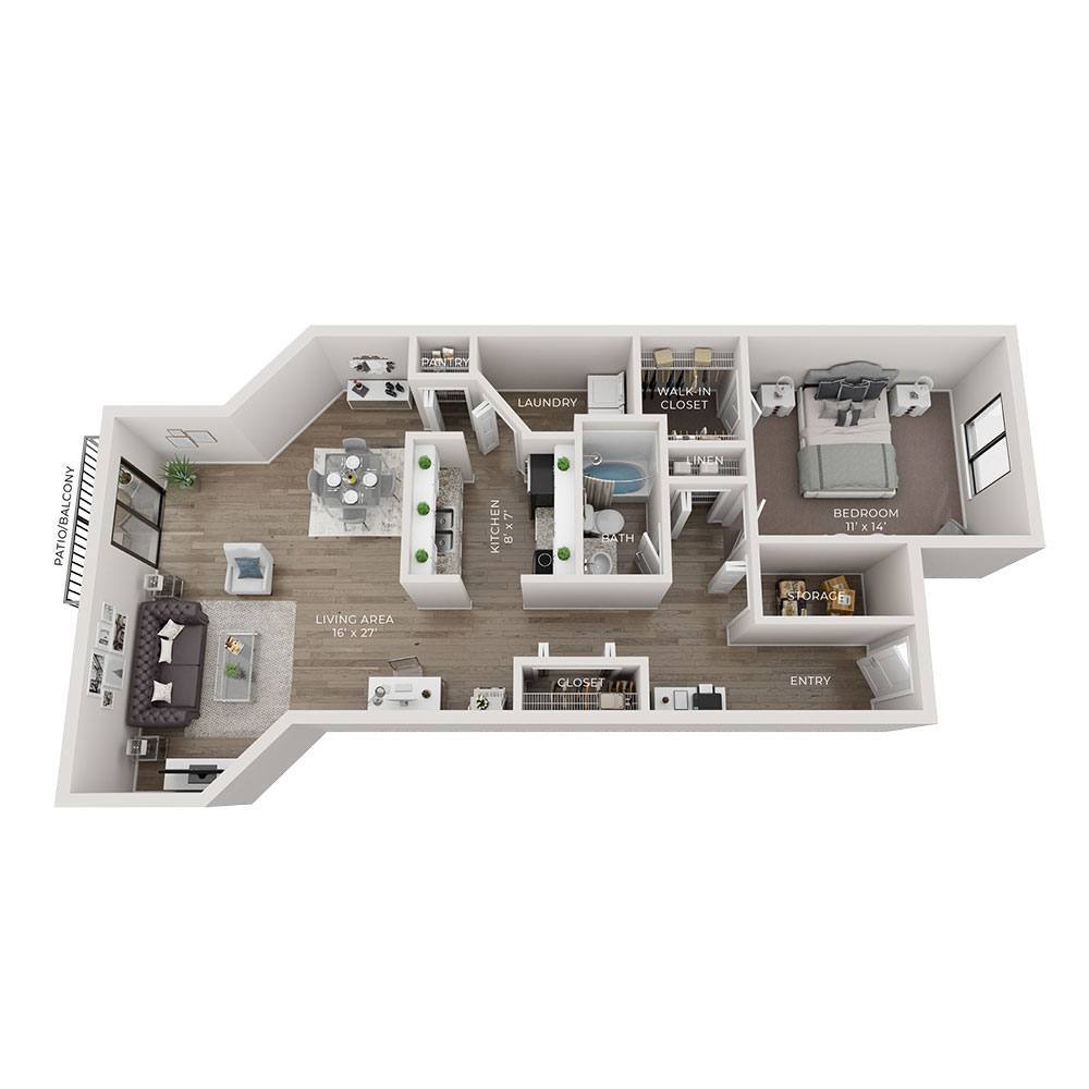 1 Dormitorio, 2 Baños, 1122 pies²Disponible AhoraEl más grandeEsta opción tiene las unidades más grandes para este modeloGalería del Modelo
