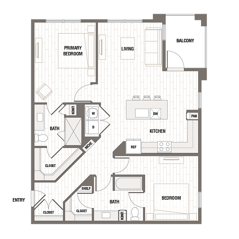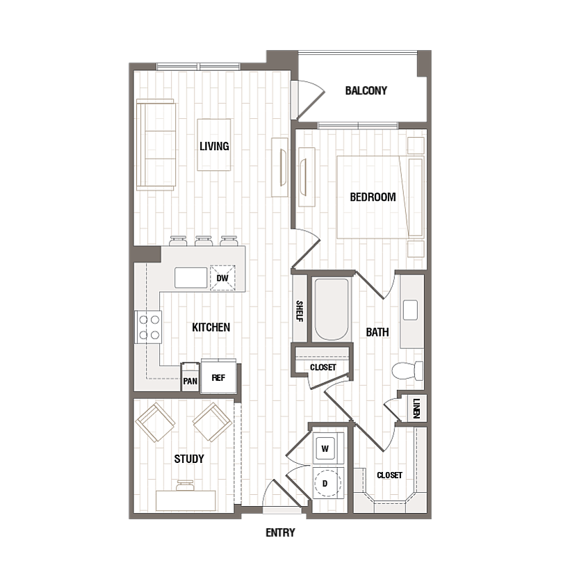 1 Dormitorio, 1 Baño, 757 pies²Disponible AhoraEl más grandeEsta opción tiene las unidades más grandes para este modeloGalería del Modelo