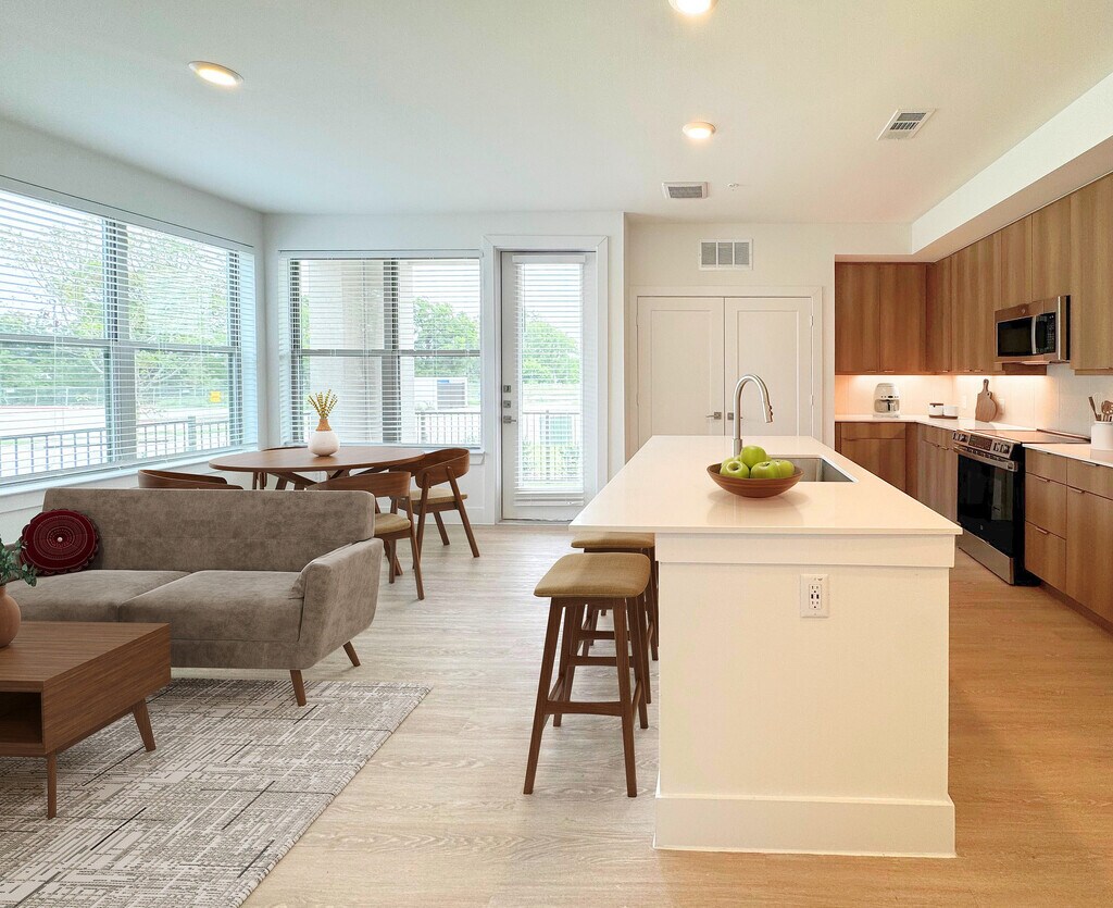 Choose from 18 thoughtfully designed floor plan options at Caroline Florence, featuring studio, 1- and 2-bedroom apartments that range from 568 to 1,165 square feet. Each residence showcases premium finishes including quartz countertops, stainless steel appliances, and LED lighting throughout. Our spacious closets provide ample storage, while modern European cabinets add sophisticated style to every kitchen.