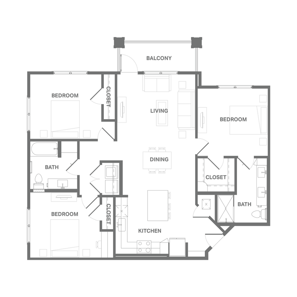 Modelo de apartamento: A3.P8Desde $1,0001 Dormitorio, 1 Baño, 726 sq ftDisponible Ahora![]()