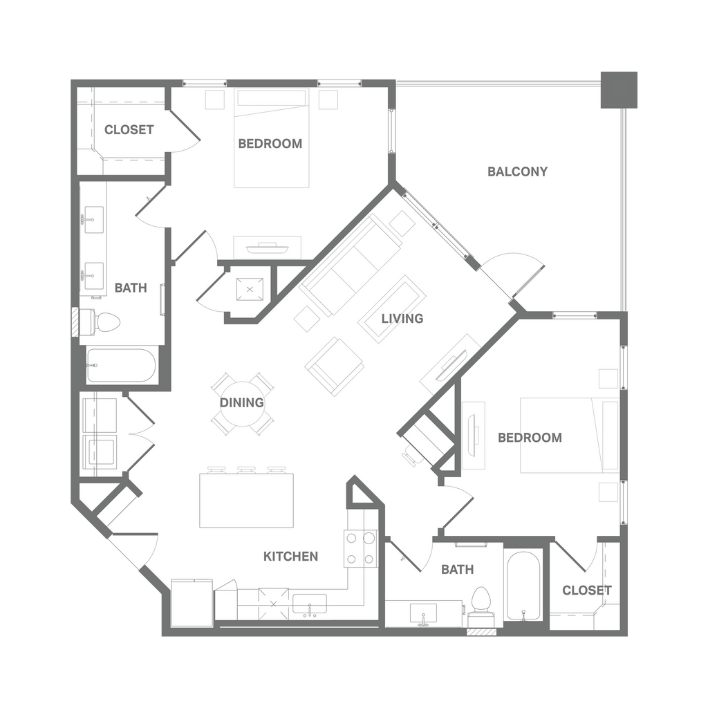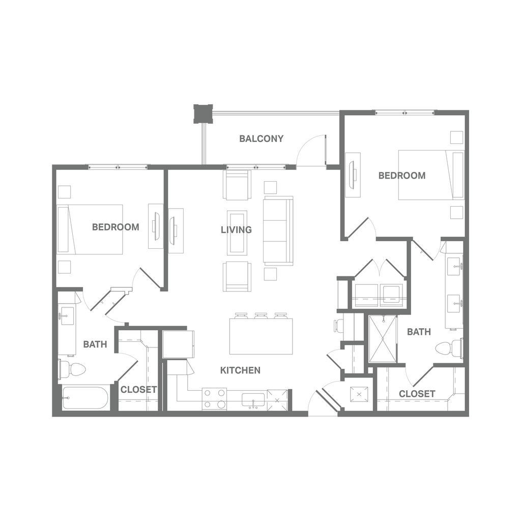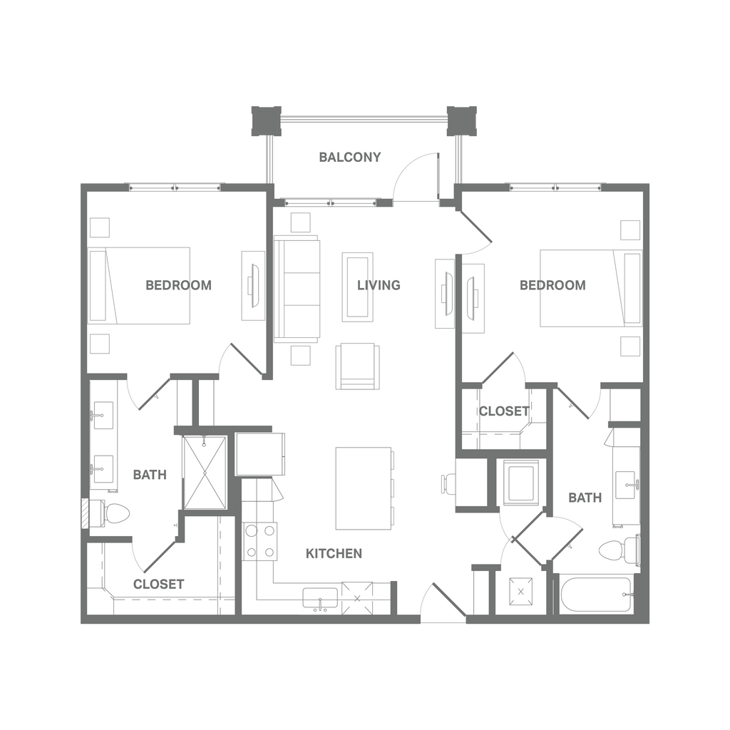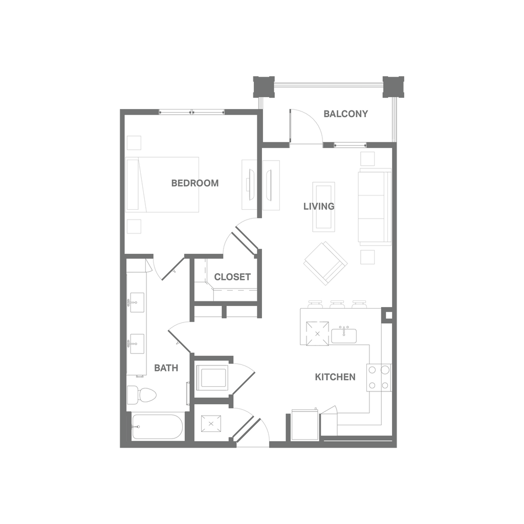 Modelo de apartamento: A1.1P8Desde $9801 Dormitorio, 1 Baño, 725 sq ftDisponible Ahora![]()