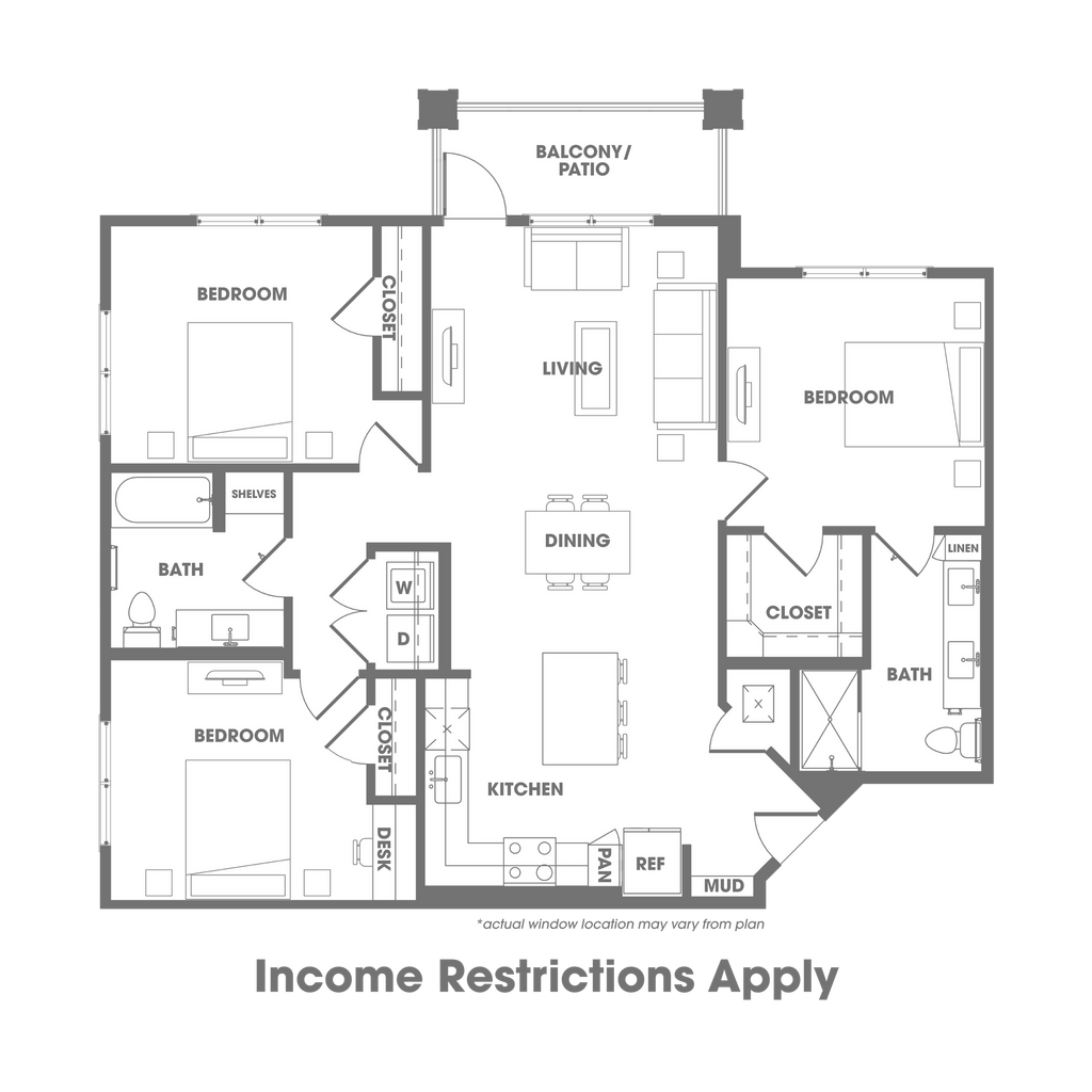 Modelo de apartamento: A4Desde $1,5221 Dormitorio, 1 Baño, 844 sq ftDisponible January 9, 2026![]()
