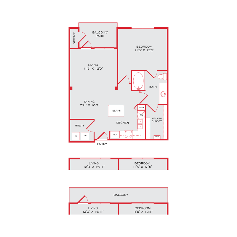 1 Dormitorio, 1 Baño, 695-701 pies²Disponible AhoraGalería del Modelo