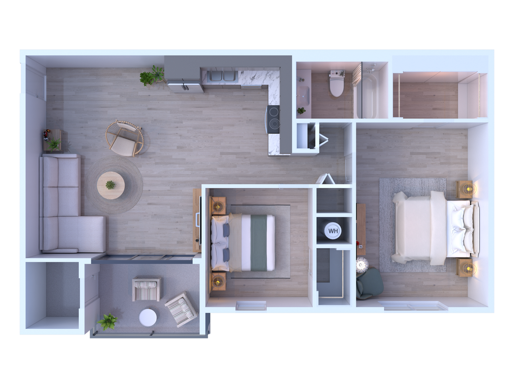 2 Dormitorios, 1 Baño, 964 pies²Precio Mensual TotalDisponible AhoraGalería del Modelo