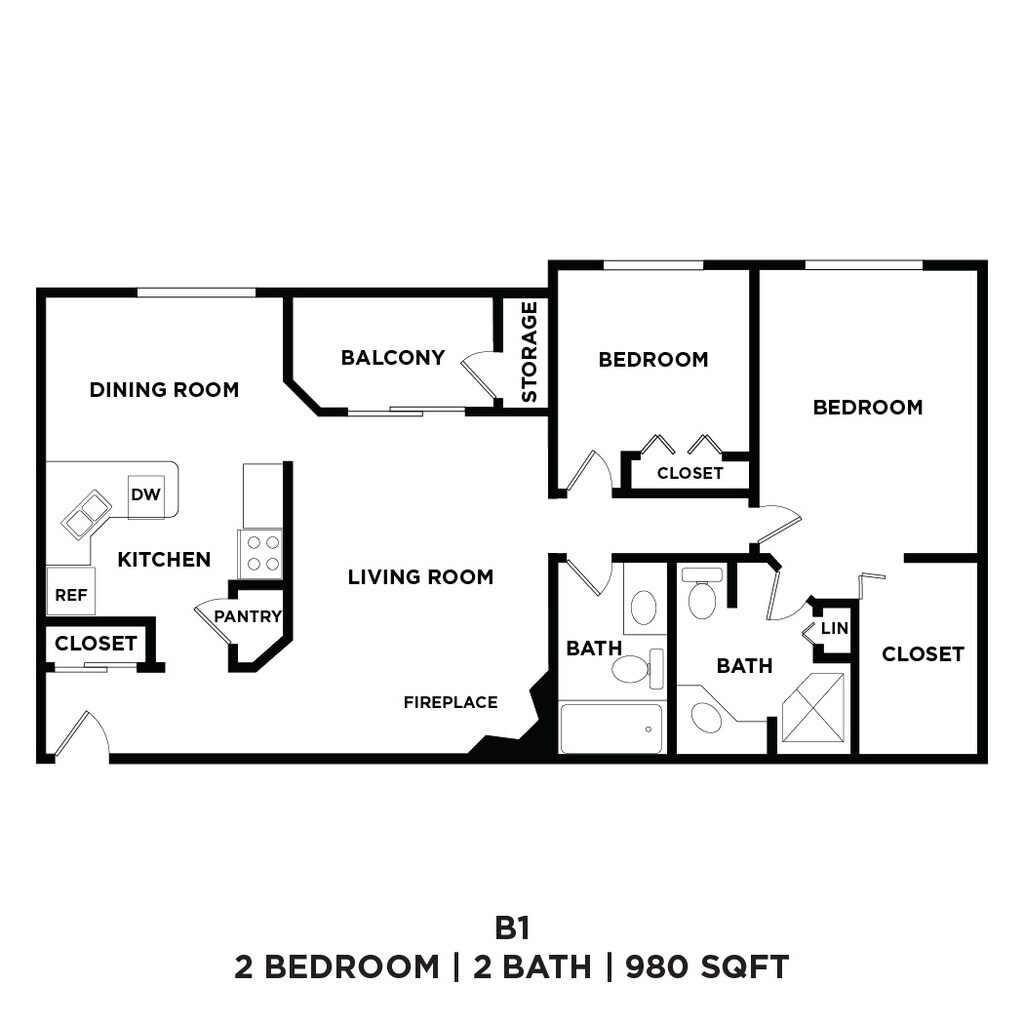 Two Bed Two Bath 980 Sqft