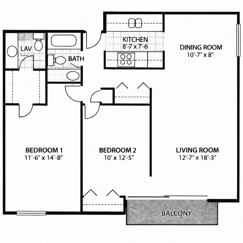 Modelo de apartamento: 2 Bed 1.5 Bath Mid-Rise B$1,3302 Dormitorios, 1.5 Baños, 1021 sq ftDisponible AhoraPlanosFotos![]()