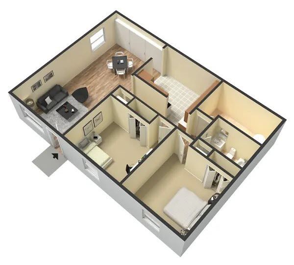 2 Dormitorios, 1 Baño, 615-1180 pies²Galería del Modelo
